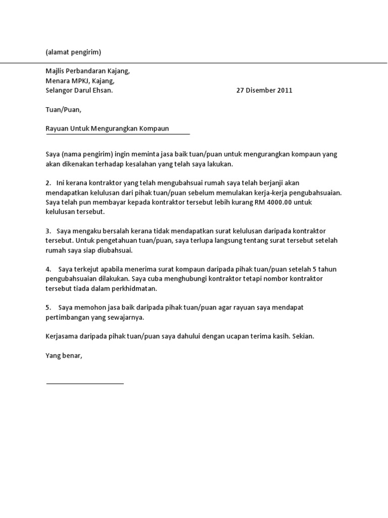 Surat rasmi rayuan pengurangan kompaun surat r. Contoh surat rayuan pengurangan kompaun kpdnkk via malayagaleriwebapp. Surat rayuan batal saman contoh su cute766.